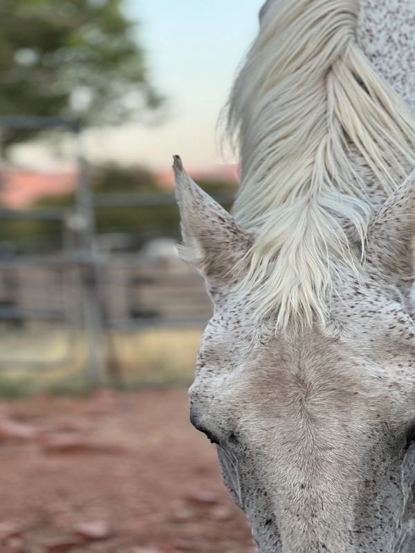 Dreamer is the newest addition to my herd. Dreamer has a very mystical side to her and she loves to gauge where people are at with her powerful stare. I often feel that she is asking me and others if they are willing to meet her in the spirit world, and if your answer is "yes" then a deep journey is about to unfold for you. In the past she has spent a lot of time in the wilderness and her way of being makes this clear. Dreamer is incredibly funny and has such a powerful depth to her. In my experience, she is a powerful teacher of patience, love, boundaries and trust.